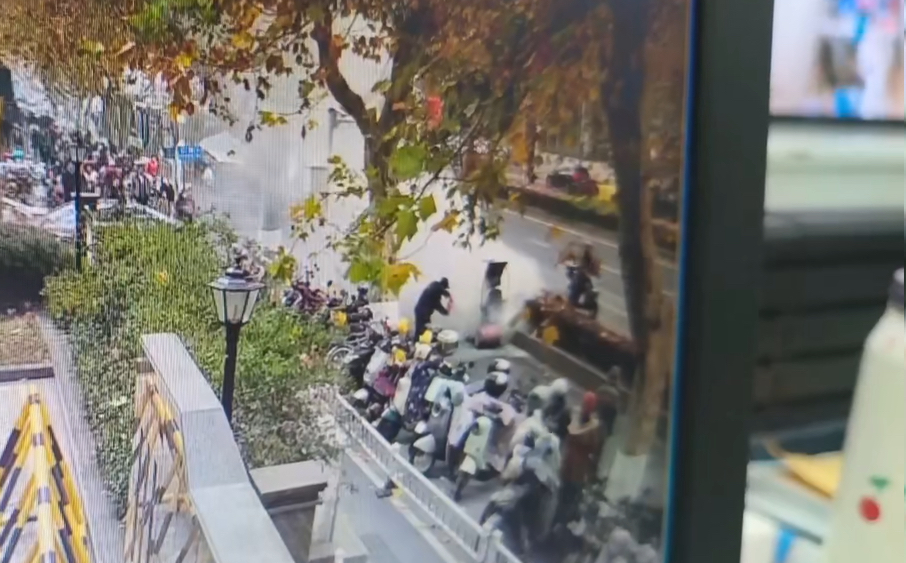 事發(fā)時,一名路人騎行電動車沿醫(yī)院門前慢車道行駛,車輛突然冒黑煙并竄出火苗,瞬間吞沒車身,騎車人受驚下車后不知所措。事發(fā)地點緊鄰醫(yī)院入口,行人和車輛密集,火勢一旦失控,極易引燃周邊車輛、危及市民安全。